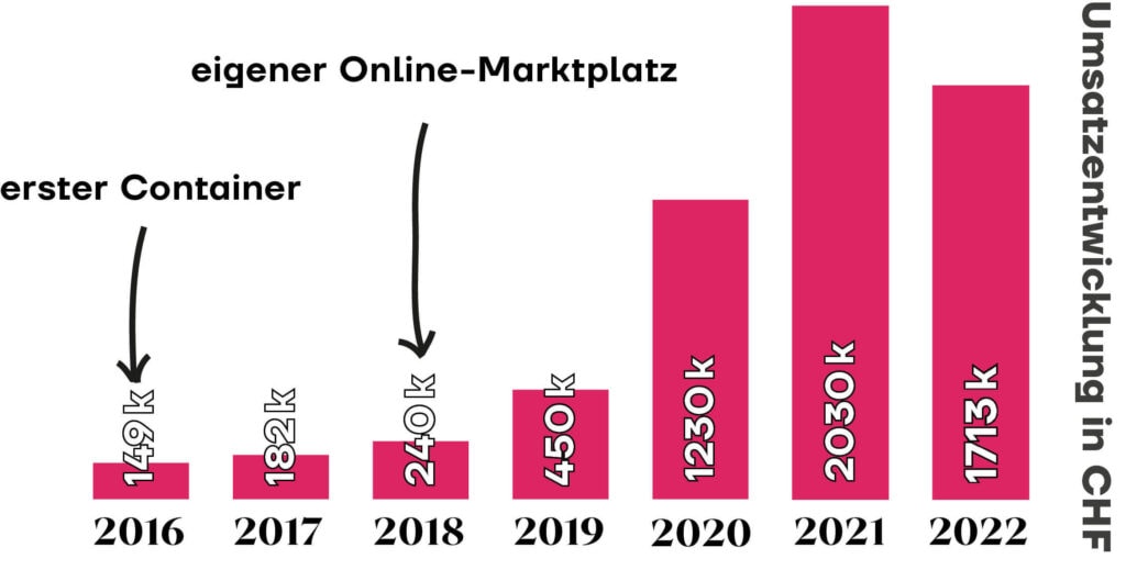 Nach den beiden Corona-Jahren mit grossem Wachstum wurde der Markt für biologisch produzierte Lebensmittel im Jahr 2022 stark durchgeschüttelt. Der unabhängige Bio-Fachhandel kam dabei unter die Räder, während die Supermärkte weiter an Dominanz gewannen. Auch an uns ging diese Entwicklung nicht spurlos vorbei: Nach einer Periode des stürmischen Wachstums verzeichneten wir im Vergleich zum Vorjahr erstmals einen Bestellrückgang um rund 15 Prozent, der alle Beteiligten, insbesondere aber die innovativen Landwirt*innen schmerzt. Von den rund 1.7 Millionen Franken Umsatz floss schliesslich mit 42 Prozent erneut der grösste Anteil zurück in den regenerativen Anbau. Weitere 29 Prozent des Umsatzes entfielen auf Logistikkosten. Unsere Bruttomarge lag mit rund 29 Prozent knapp unter unserer Zielgrösse von 30 Prozent, was im letzten Jahr leider nicht ausreichte, unsere operativen Fixkosten zu decken.