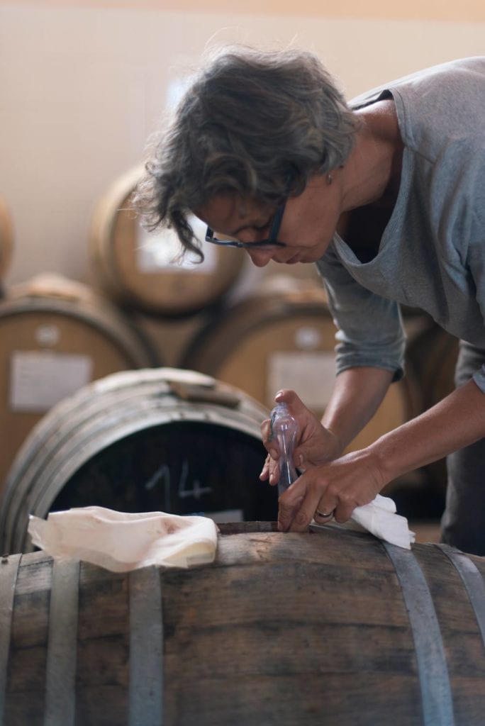 Nach der Traubenernte wird aus den biologisch angebauten Früchten ein guter Wein gekeltert, um ihn dann vergären zu lassen – schon etwas verrückt, oder? Damit aus dem Wein ein wirklich hochstehendes Produkt entsteht, sucht Natalia Simeti stets die richtigen Bakterienkulturen für ihren Essig aus. Natalia probiert immer wieder neue Ansätze, und nur wenn das Aroma ihren hohen Ansprüchen genügt, darf der Wein im gut belüfteten Fass weiter gären. Nach sechs Monaten Gärungsprozess – bei industriellem Essig sind es gerade mal 24-48 Stunden – kommt der Essig nochmals sechs Monate ins Barrique, bevor er dann abgefüllt wird. So leuchtet ein, dass der Preis für einen guten Weinessig um einiges höher sein muss, als der Preis für den Wein, aus dem er hergestellt wird.