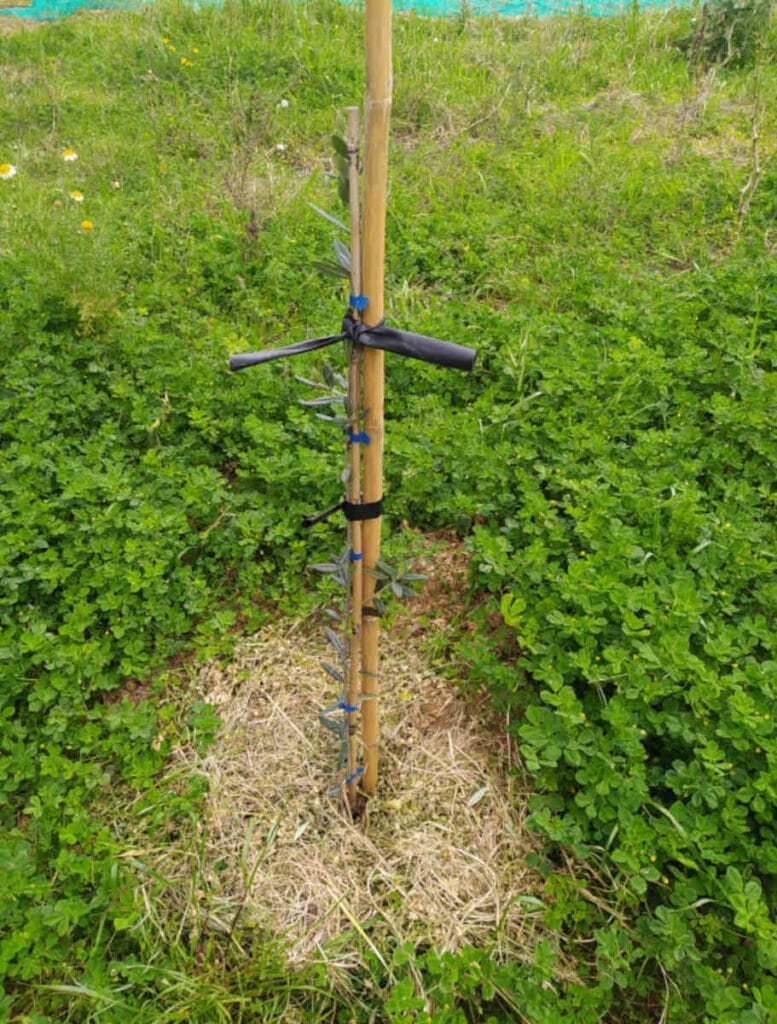 Alle 65 Olivenbaumsetzlinge der Sorte Cerasuola sind mittlerweile gepflanzt. Der Boden rund um diese Bäume wird gemulcht, das heisst mit organischem Material bedeckt, um Feuchtigkeit zu speichern und dadurch Wasser zu sparen. Zusätzlich zu den Olivenbäumen werden bis Mai 2021 alle anderen Baumarten gepflanzt, darunter Avocado- und Zitrusbäume. All diese Bäume stammen aus einer regionalen Baumschule im sizilianischen Madonie Naturpark. Es werden mehrheitlich alte Sorten, die trockenheitsresistent sind, gewählt. Dadurch können zum Beispiel auch Avocados ohne übermässigen Wasserverbrauch bewirtschaftet werden.