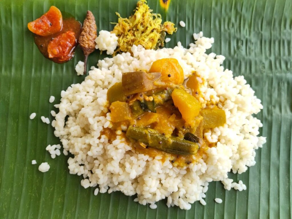 Doch ich bekomme nicht nur neues Wissen vermittelt, sondern auch viel leckeres und frisches Essen aufgetischt: Die Basis bildet der lokale Reis, immer begleitet von herzhaft zubereitetem und gut gewürztem Gemüse mit Kokosmilch. Abgerundet wird das Ganze von selbstgemachten Pickles. Für Zwischendurch gibt’s diverse süsse Snacks: Angefangen bei frischen Papayas, Bananen, Zimtäpfeln und Passionsfrüchten, über Kokosnüsse, von denen ich auch das erfrischende Wasser schlürfe, bis hin zu Kakao, von dem das zarte Fruchtfleisch gegessen wird.
