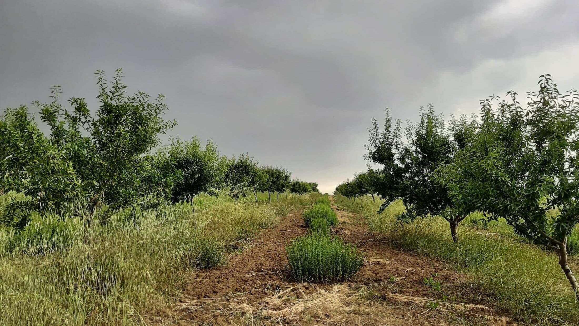 Bewusste Unordnung: Erina Salamone lässt Gras zwischen den Mandelbaumreihen wachsen, damit der Boden mehr Feuchtigkeit speichern kann und die Erde bei Regenfällen weniger weggespült wird.