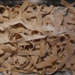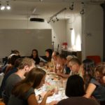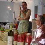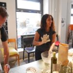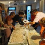 Als unsere beiden ersten Mitglieder, Sabine und Kaspar aus Basel, nachmittags im L200 an der Langstrasse eintrudelten waren die Pasta-Utensilien bereits ausgelegt und das Emmer – Mehl bereit, geknetet zu werden. Sabine und Kaspar erzählten mir, sie seien mit dem Zug von Basel her angereist und hätten schon lange grosse Freude an den feinen Crowd Container Lebensmitteln. Nach und nach vervollständigte sich unser Koch-Grüppli bis wir dann vollzählig von Maurice Maggi in den Nachmittag eingeführt wurden. Teig ausrollen, Mandeln zerstossen, Passata köcheln – die Zeit verflog wie im Winde und kurz bevor die restlichen Mitglieder zum Abendessen dazustiessen war die letzte Emmer – Nudel geformt und der Sugo abgeschmeckt. Es folgte ein wunderbares Schlemmen und Kennenlernen. Zu Getreidesorten wie Emmer, Dinkel und Einkorn erzählte uns Bernadette vom Forschungsinstitut für biologischen Landbau (FiBL) Spannendes. Unser Tobias schmückte das Gekochte mit Einblicken und Anekdoten zu den jeweiligen Produzenten dahinter. Nun, es war in vielerlei Hinsicht ein inspirierender Abend. Es trafen Menschen mit unterschiedlichsten Hintergründen, geografisch wie auch sonst, zusammen. Eines aber teilten wir alle, nämlich die Freude an Lebensmitteln und die Wertschätzung deren Geschichte dahinter.