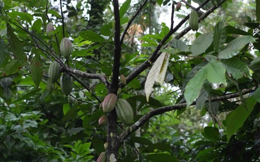 FTAKDie Kakaobohnen wachsen in Agroforstsystemen und ohne chemisch-synthetische Pestizide im Norden Keralas (Südindien). Die Bäuer*innen der Fair Trade Alliance Kerala (kurz FTAK) bauen dort Kaffeesträucher neben Kokospalmen, Pfefferpflanzen, Zimtbäumen und Kardamomsträuchern an. Diese Art der Landwirtschaft fördert die Biodiversität und ist klimafreundlich: Im Boden und in den Bäumen wird viel CO2 gespeichert, auf Hilfsmittel wie Maschinen und Dünger kann fast vollständig verzichtet werden. Die Kakaobohnen von FTAK werden vor Ort sorgfältig fermentiert. Geerntet wird von Hand.