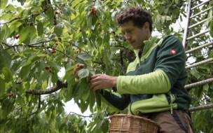 Über 140 Hochstammbäume stehen auf dem 34 Hektaren grossen Riedackerhof. Gepflanzt wurden die Bäume vor mehreren Jahrzehnten von Christoph Rickenbachs Grossvater. Damals waren die Kirschen im Fricktal ein wichtiger Wirtschaftszweig und neben dem Tafelobst wurde vor allem auch Schnaps gebrannt. Noch heute prägen die Hochstammbäume das Landschaftsbild und sind ein wichtiger Lebensraum für viele bedrohte Tierarten. Neben Hochstammobst baut er spezielle Ackerkultruen wie Lein, Hirse und Linsen. Er experimentiert mit Mischkulturen und neuen Anbauformen, immer neugierig auf fruchtbare Ideen für Hof und Natur. Hier findest du unseren Blog-Beitrag rund um die Hochstamm Kirschen.