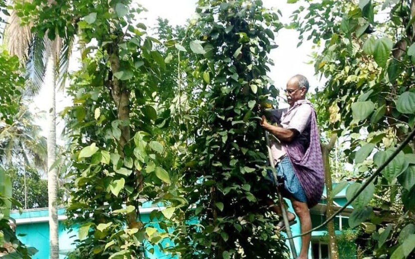 Die Pfefferpflanzen wachsen auf den Kleinbetrieben der «Fair Trade Alliance Kerala» Mitglieder – in ökologischen Agroforstsystemen zwischen Kokospalmen, Kaffeesträuchern und vielen weiteren Kulturpflanzen. Schwarzer Pfeffer wird grün geerntet, also noch bevor er ganz reif ist und seine Früchte rot werden. Danach wird der Pfeffer vor den Häusern oder auf den Dächern an der Sonne getrocknet. Dabei entsteht die schwarze Hülle, welche dem schwarzen Pfeffer seinen Namen gibt. Die Körner aus der Region Malabar gelten als besonders aromatisch.