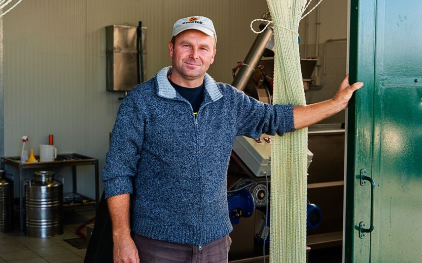 Mario Geloso ist Mitglied der Kooperative Valdibella. Auf seinem Betrieb hegt und pflegt er 1’800 Olivenbäume sowie ein paar Zitrusbäume. Sein Hof liegt unweit des Mittelmeeres in einem tonhaltigen Gebiet, das dem Boden Feuchtigkeit spendet. So müssen die Bäume nur während sehr langer und intensiver Hitzephasen mit Brunnenwasser bewässert werden. Seine «Cerasuola» Oliven verarbeitet Mario auf der hofeigenen Ölmühle, die er von seinem Vater Pietro Geloso übernommen hat. Die direkte Verarbeitung auf dem Hof hat zwei Vorteile: Mehr Wertschöpfung für Mario und ein hochwertiges, sortenreines Olivenöl Extra Vergine mit intensivem Geschmack.