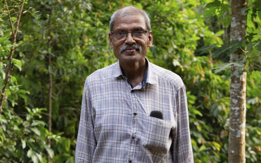 Die kleinen Bauernhöfe der Mitglieder der «Fair Trade Alliance Kerala» sind im Durchschnitt nur gerade zwischen einer und zweieinhalb Hektar gross. Die Bäuerinnen bauen auf dieser kleinen Fläche eine grosse Vielfalt von Produkten an – in mehrstufigen Agroforstsystemen, ganz ohne Pestizide und Kunstdünger. Auf den Betrieben wachsen viele verschiedene Gewürze, Früchte und Gemüsepflanzen, Cashewbäume, Kakao, Kaffee und Kokospalmen. Diese Art der Landwirtschaft fördert die Biodiversität und ist klimafreundlich: Im Boden und in den Bäumen wird viel CO2 gespeichert, auf Hilfsmittel wie Maschinen und Dünger kann fast vollständig verzichtet werden. Zudem haben sich im feuchten Hochland von Wayanad einige Produzentinnen zusammengeschlossen, um traditionelle Reissorten umweltschonend anzubauen – als Reaktion auf die immer stärker industrialisierte Landwirtschaft. Die Mitglieder der «Fair Trade Alliance Kerala» produzieren für sich selbst und ihre Familien. Was den Eigenbedarf übersteigt, wird auf lokalen Dorfmärkten verkauft oder exportiert. Viele Produzent*innen haben ein Zusatzeinkommen, weil Familienangehörige in der Stadt oder gar im Ausland arbeiten und die Bauernfamilien unterstützen.